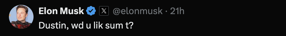 DUN token sprouted from the most unexpected of places: a tweet tussle between tech giants. It’s the lovechild of Dustin Moskovitz’s biting skepticism and Elon Musk’s cryptic clapbacks, born when Moskovitz lobbed serious fraud allegations at Musk’s companies and Musk replied with a quirky “Dustin, wd u lik sum t?”. Fast-forward through the tweets and treats, and here we are with "DustinUnderNuts" - a memetoken that's nuts about humor and doesn't crack under the pressure of a good roast. It's the meme world's peanut gallery tribute to tech-world tiffs, and it's cracking up the crypto scene one shell at a time.